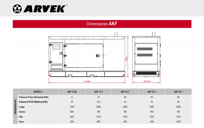 • Nivel de ruido: Equipos cabinados 72 [dB(A)]